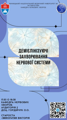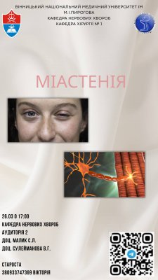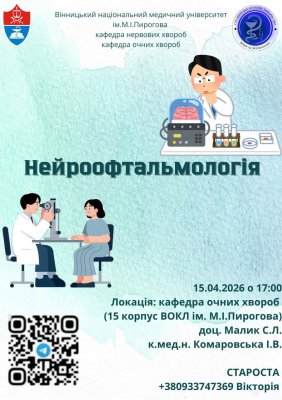 26.03.2025 1) О 16:00 - Студентська Олімпіада з неврології. Локація : Кафедра нервових хвороб, лабораторія №2 кафедри. З собою мати обов'язково : халат, змінне взуття.