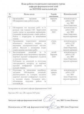 - 1. Н.В.Романюк, Б.В.Насіковський, ІІІ курс, 53 група. Фармакогностичний аналіз лікарської рослинної сировини з вмістом БАР антоціанової природи. Наукові керівники: к.фарм.н., доц. І.Г.Мудрак, ас. О.В. Зарічанська, ас. А.О. Очеретнюк