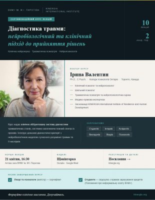 Запрошуємо студентів, інтернів, аспірантів, викладачів, лікарів та психологів на сертифікаційний курс лекцій «Діагностика травми: нейробіологічний та клінічний підхід до прийняття рішень»
