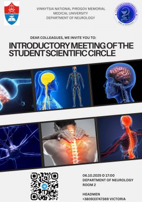 План роботи студентського - наукового гуртка кафедри Нервових хвороб Вінницького національного медичного університету ім. М.І. Пирогова на 2025-2026 навчальний рік