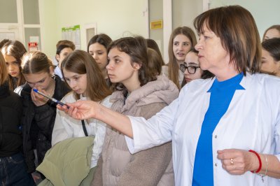 Візит ліцеїстів до ВНМУ розпочався на кафедрі медичної біології, де їх зустріла організаторка екскурсії доцентка Тетяна Полеся. Після докладної ознайомчої лекції клас у супроводі заступника декана медичного факультету № 1 Юрія Шкарівського перейшов на кафедру анатомії людини, щоб досліджувати будову людського тіла разом із доценткою Надією Шпаковою.