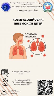 24. Дудник В., Зборовська О., Тетерін О., Хромих К. «Судинні кільця як рідкісна причина задишки у дітей». ERS Congress 2024, 7 – 11 вересня 2024, Відень, Австрія