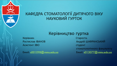 Місце проведення засідань – кафедра стоматології дитячого віку, вул.Стуса 2/19