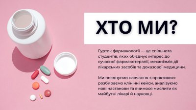Великою зацікавленістю серед студентів 3-го курсу користується фармакологічна вікторина, яка проводяться щороку з ініціативи О.О. Столярчука з початку семидесятих років. Основою проведення такого заходу є презентація в неформальній обстановці опанованих студентами компетенцій. Крім теоретичних питань обов’язковими є творчі конкурси, які вимагають не лише знань предмета, а й креативного підходу до їх демонстрації.