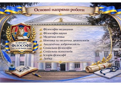 Лікар і гуманізм, лікар і громадянин... Ці поняття стали невід'ємними і протягом багатьох років були головним змістом і метою роботи викладачів-сульпільствознавців університету по вихованню спеціалістів охорони здоров'я. В умовах розбудови незалежної Української держави кафедра докладає максимум зусиль щодо реалізації нової концепції викладання гуманітарних і суспільно-політичних дисциплін, готує молоде покоління до сприйняття нових ідей, підходів і форм життя, оволодіння світовими і вітчизняними знаннями в галузі суспільствознавства.