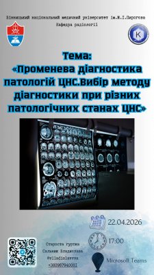 22.04.2026р. «Променева діагностика патологій ЦНС. Вибір методу діагностики при різних патологічних станах ЦНС