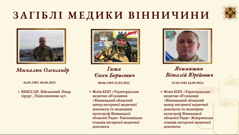 Разом з тим, найстрашнішим є те, що, допомагаючи рятувати життя, гинуть й самі медики. На Вінниччині десятеро загиблих на війні лікарів.