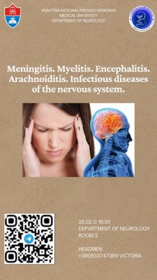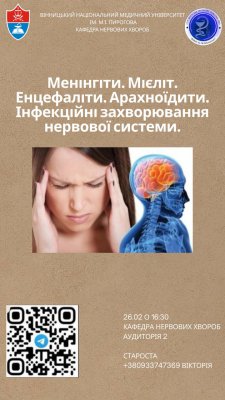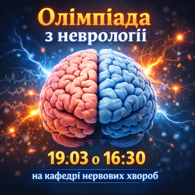 26.03.2025 1) О 16:00 - Студентська Олімпіада з неврології. Локація : Кафедра нервових хвороб, лабораторія №2 кафедри. З собою мати обов'язково : халат, змінне взуття.