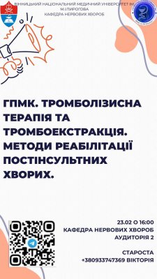 ГПМК. Тромболізисна терапія та тромбоекстракція. Методи реабілітації постінсультних хворих. Керівник:проф.ЗВО Московко С.П., доц. ЗВО Малик С.Л. |