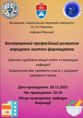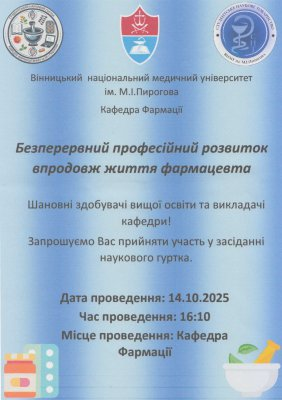 План роботи студентського наукового гуртка кафедри фармації ВНМУ ім. М.І. Пирогова