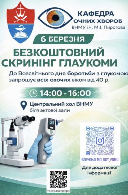 Пройти безплатний скринінг глаукоми запрошує 6 березня кафедра очних хвороб